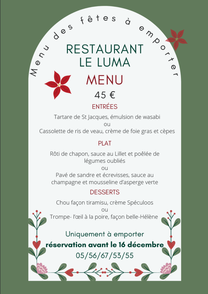 Le restaurant le Luma vous propose tous les jours une formule du midi à 16,50 €, avec un large choix d’entrées, plats et desserts; Le tout dans un respect de la cuisine traditionnelle et élaboré avec des produits frais.